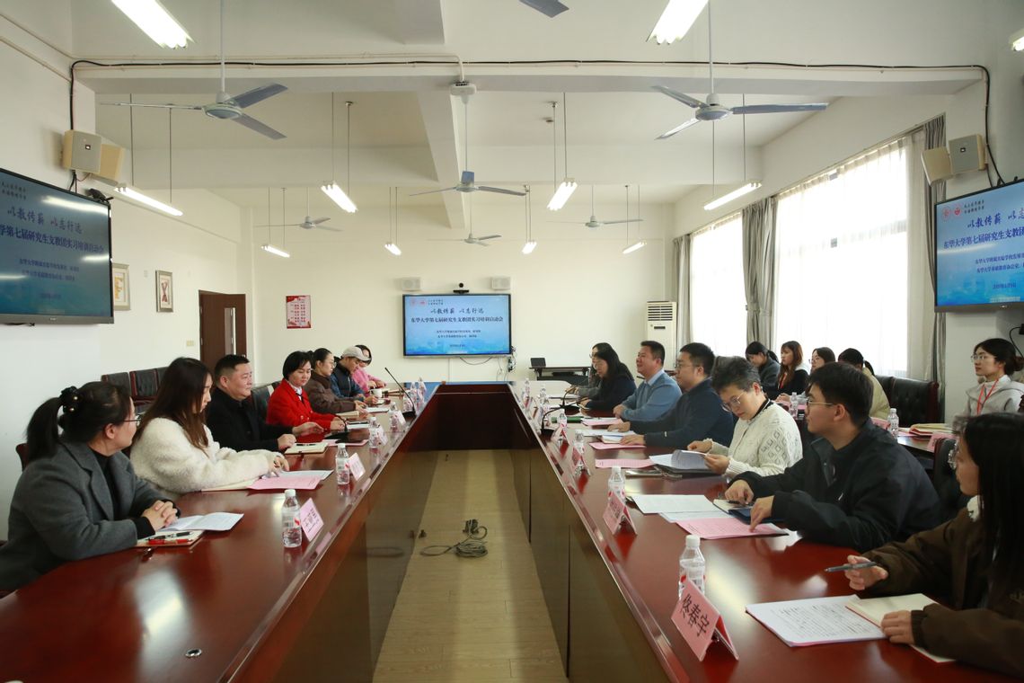 柴煜代表东华大学团委对东华附校多年来在支教团培养工作上的鼎力支持致以诚挚感谢,并对第七届研支团成员提出三点工作要求:一是要“归零心态、虚心求学”,以谦逊的态度向前辈请教;二是要“知行合一、学以致用”,将理论知识与附校的先进教学理念深度融合,在复杂的教学情境中提升解决实际问题的能力;三是要“凝心聚力、团结协作”,在实习期间锤炼团队协作精神,共同打造一支政治坚定、素质过硬、作风优良的西部志愿服务队伍。